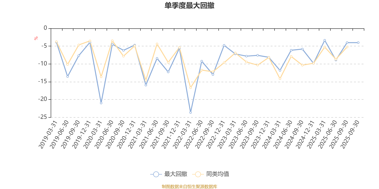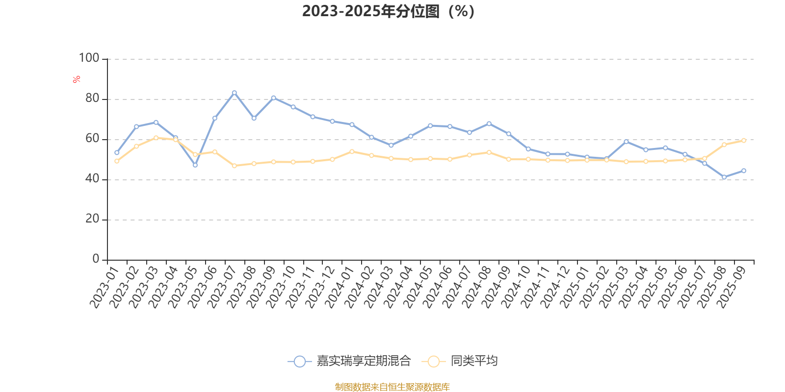 通过所选区间该基金净值增长率分位图,可以观察该基金与同类基金业绩比较情况。图为坐标原点到区间内某时点的净值增长率在同类基金中的分位数。