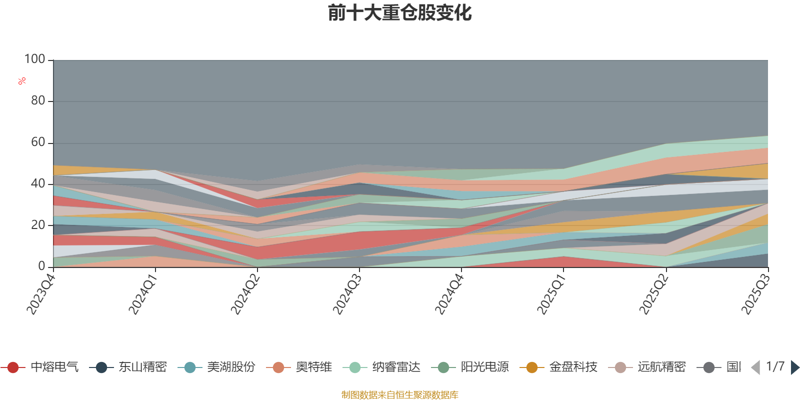 截至2025年三季度末,基金十大重仓股分别是阳光电源、亿纬锂能、华测导航、大金重工、东山精密、博迁新材、美湖股份、麦加芯彩、远航精密、金盘科技。