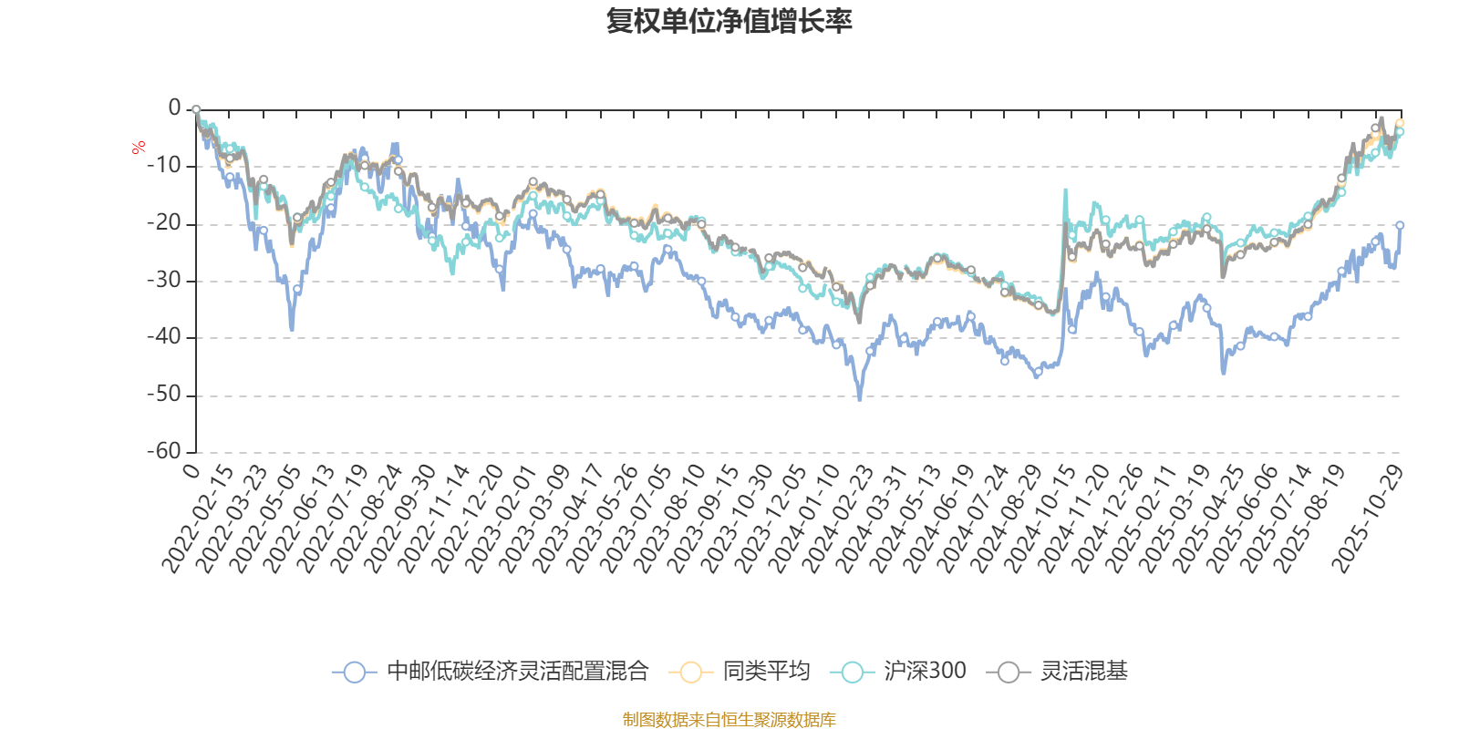截至10月29日,中邮低碳经济灵活配置混合近三个月复权单位净值增长率为17.27%,位于同类可比基金456/1287;近半年复权单位净值增长率为35.52%,位于同类可比基金403/1287;近一年复权单位净值增长率为19.29%,位于同类可比基金761/1287;近三年复权单位净值增长率为-2.49%,位于同类可比基金1069/1286。