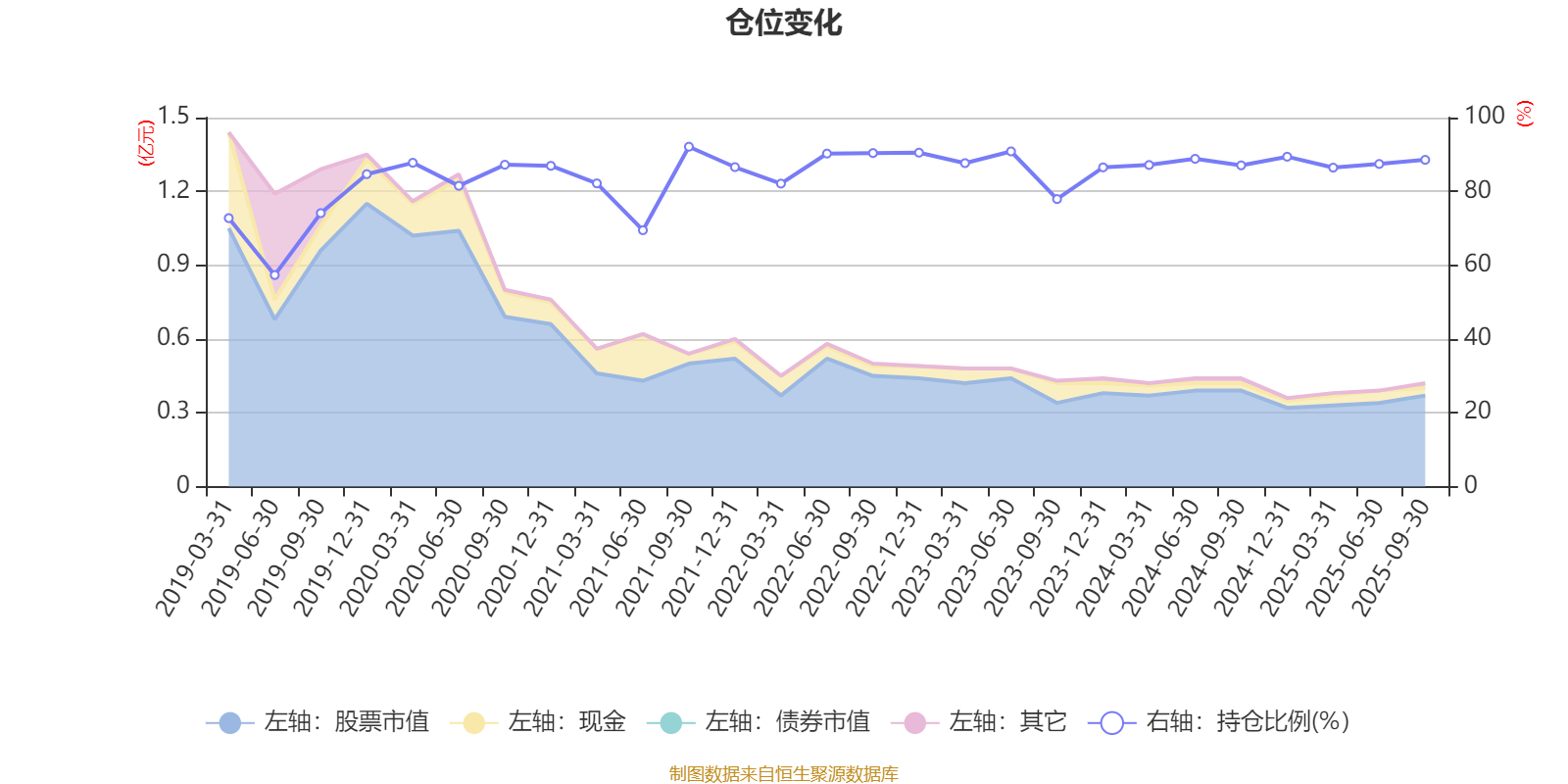 据定期报告数据统计,近三年平均股票仓位为87.36%,同类平均为72.35%。2021年三季度末基金达到92.11%的最高仓位,2019年上半年末最低,为57.33%。