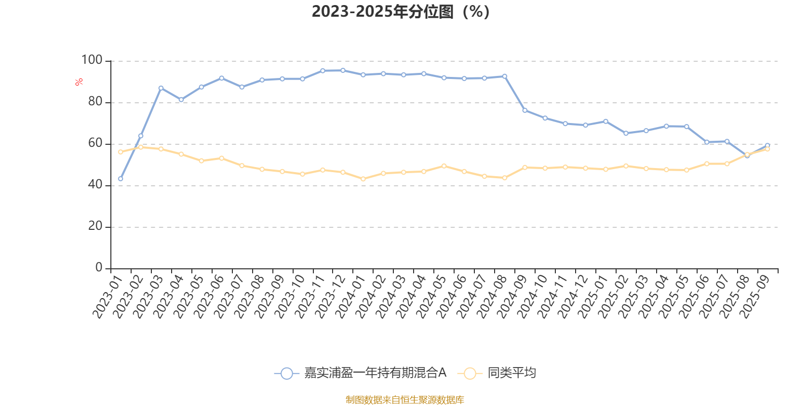 通过所选区间该基金净值增长率分位图,可以观察该基金与同类基金业绩比较情况。图为坐标原点到区间内某时点的净值增长率在同类基金中的分位数。