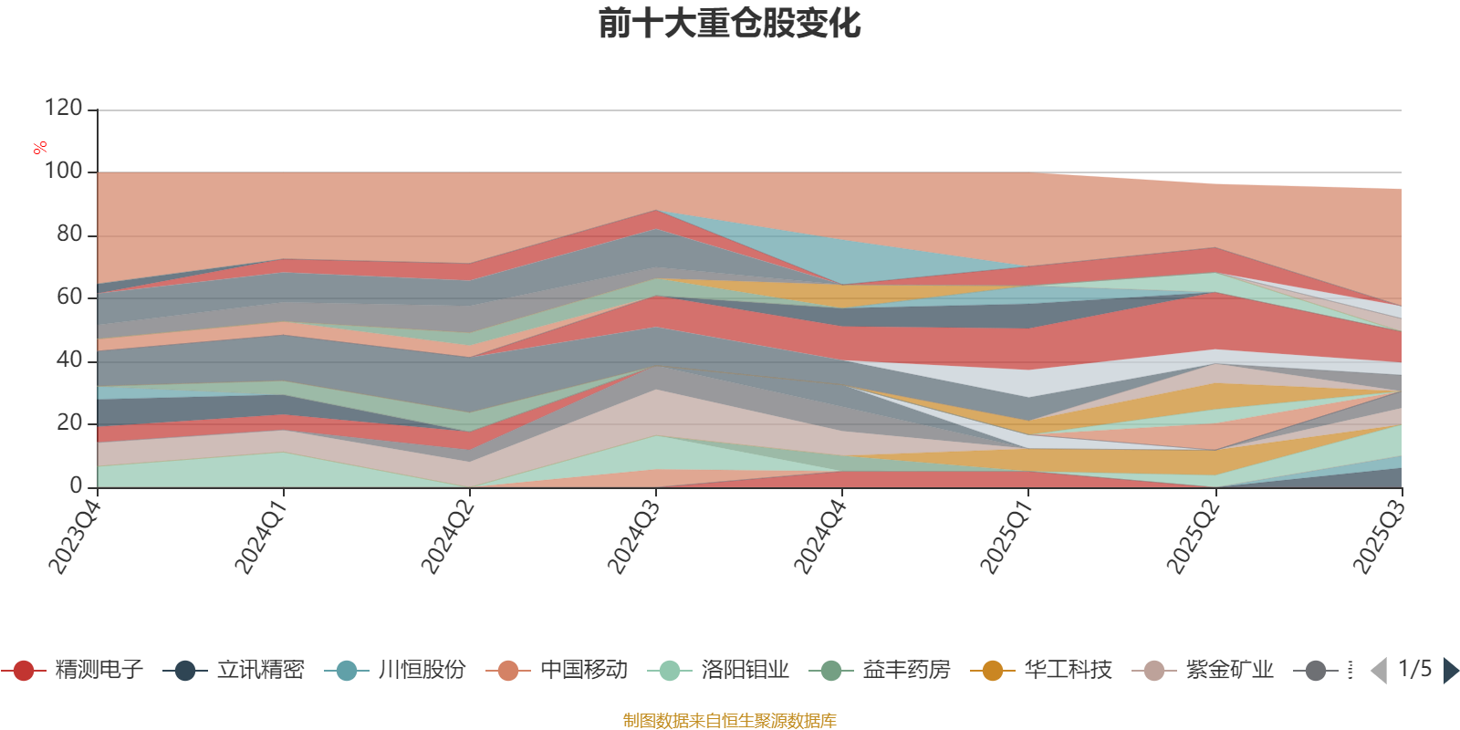 该基金持股集中度较高,近2年前十大重仓股集中度长期超过60%。截至2025年三季度末,基金十大重仓股分别是洛阳钼业、固生堂、立讯精密、美的集团、紫金矿业、药明康德、中天科技、翰森制药、阿里巴巴-W、川恒股份。