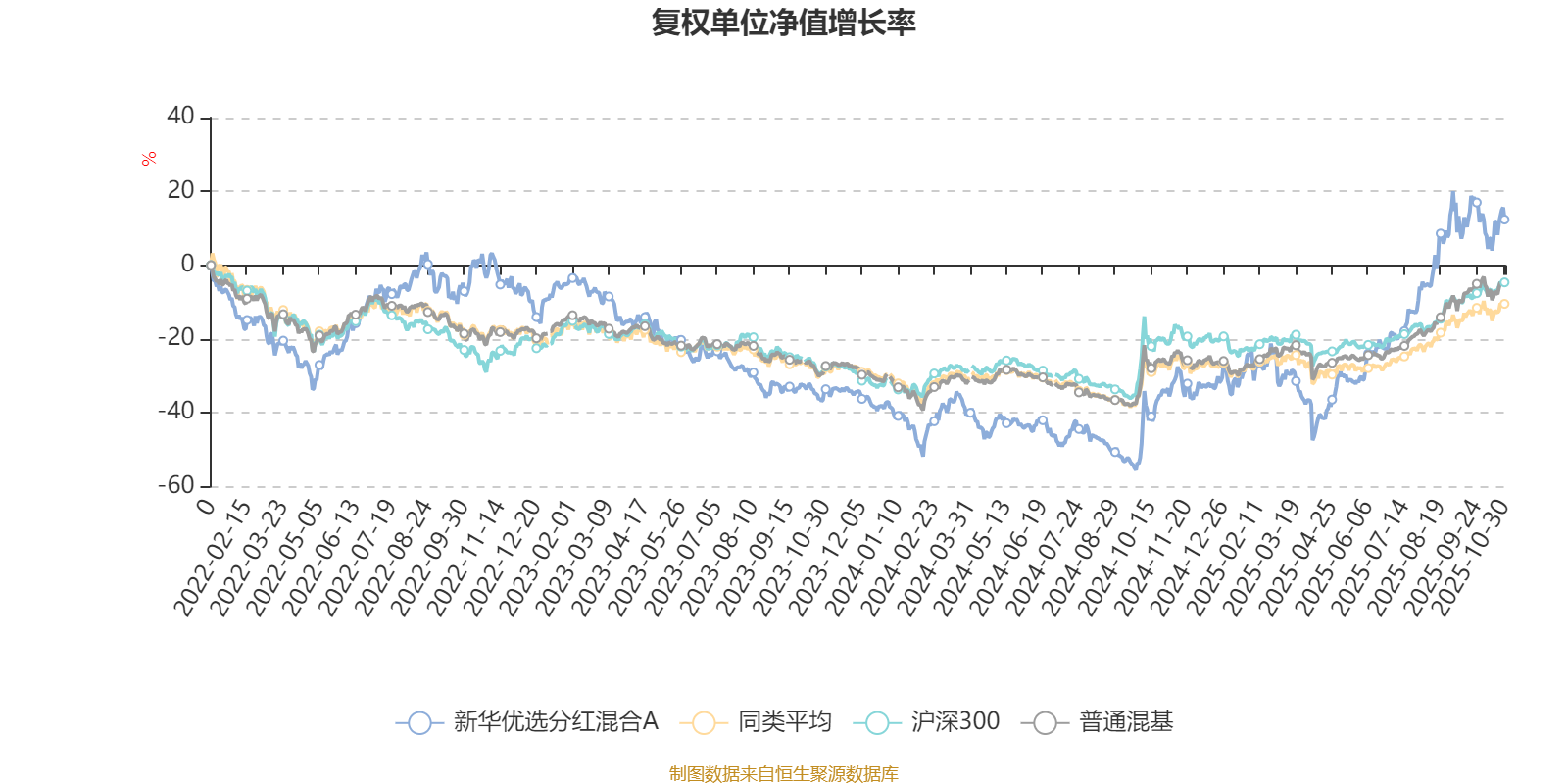 截至10月30日,新华优选分红混合A近三个月复权单位净值增长率为20.48%,位于同类可比基金22/134;近半年复权单位净值增长率为67.53%,位于同类可比基金3/134;近一年复权单位净值增长率为70.34%,位于同类可比基金3/130;近三年复权单位净值增长率为15.00%,位于同类可比基金72/119。