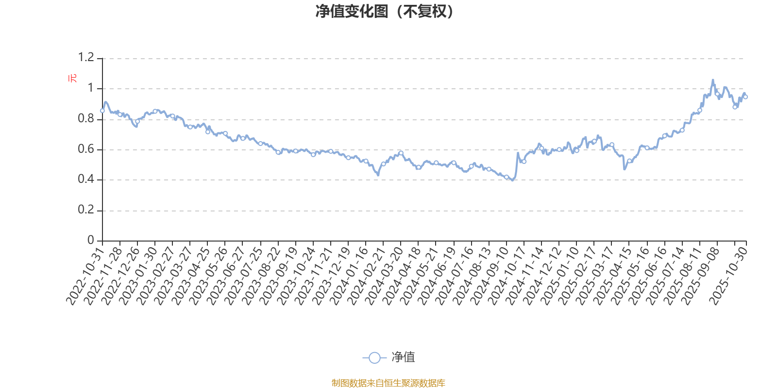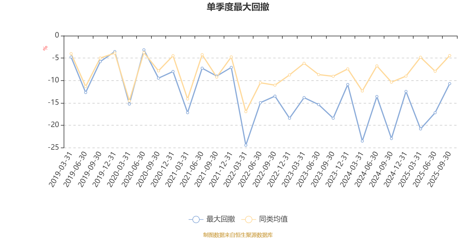 通过所选区间该基金净值增长率分位图,可以观察该基金与同类基金业绩比较情况。图为坐标原点到区间内某时点的净值增长率在同类基金中的分位数。
