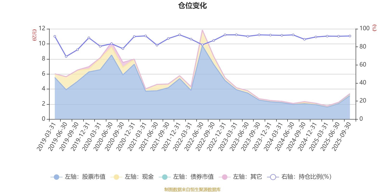 据定期报告数据统计,近三年平均股票仓位为92.15%,同类平均为85.66%。2023年一季度末基金达到93.37%的最高仓位,2019年上半年末最低,为69.36%。