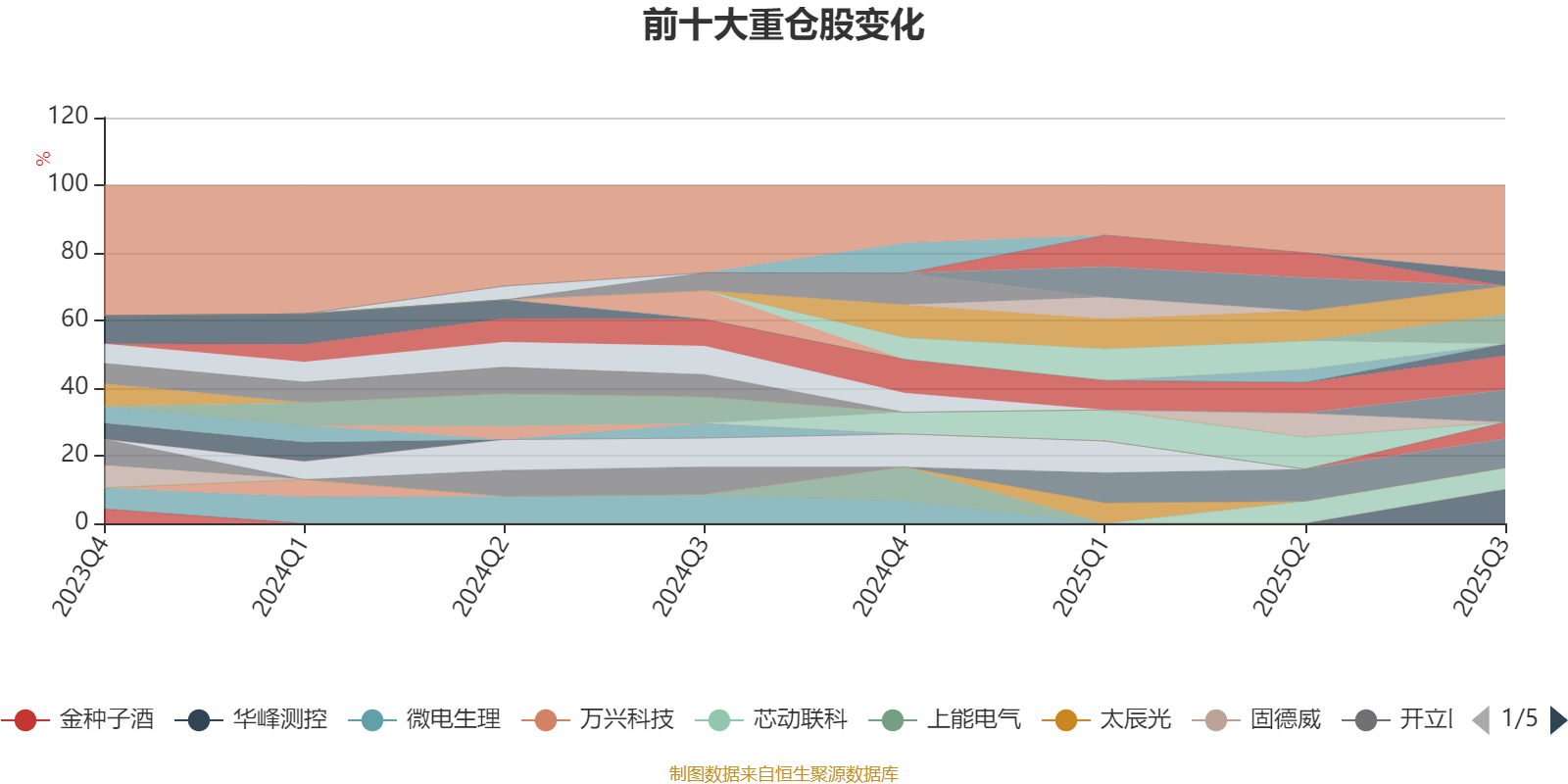 该基金持股集中度较高,近2年前十大重仓股集中度长期超过60%。截至2025年三季度末,基金十大重仓股分别是源杰科技、华峰测控、迈威生物、若羽臣、德科立、鼎通科技、芯动联科、汇绿生态、汇宇制药、海泰新光。