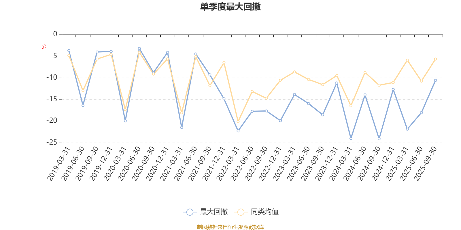 截至10月30日,基金近三年最大回撤为58.28%,同类可比基金排名502/513。单季度最大回撤出现在2024年三季度,为24.1%。