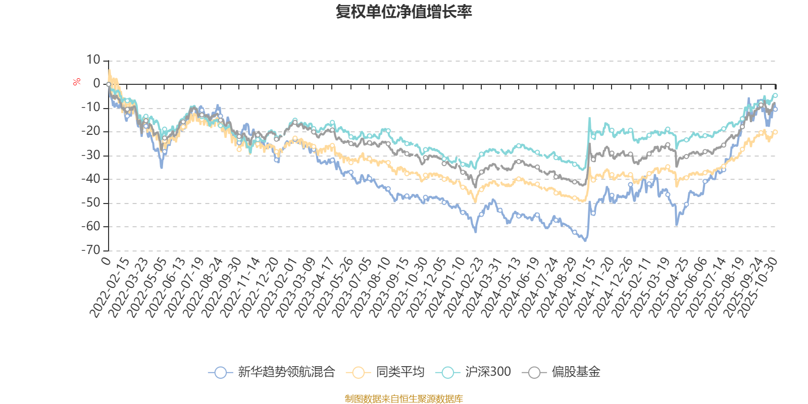 截至10月30日,新华趋势领航混合近三个月复权单位净值增长率为22.47%,位于同类可比基金156/621;近半年复权单位净值增长率为71.00%,位于同类可比基金29/621;近一年复权单位净值增长率为73.64%,位于同类可比基金27/611;近三年复权单位净值增长率为13.38%,位于同类可比基金298/518。