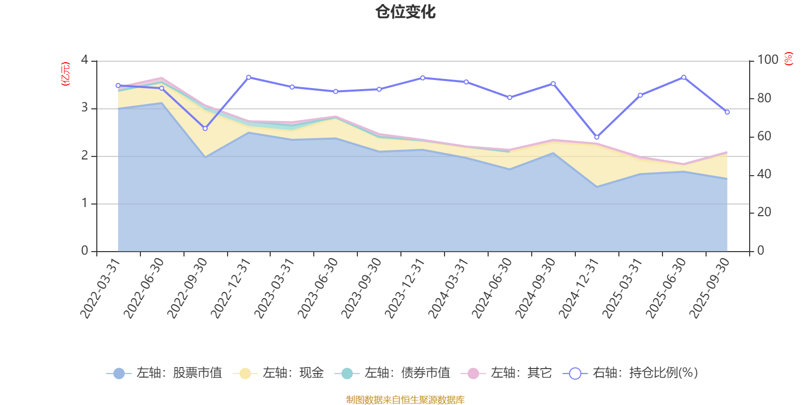 据定期报告数据统计,近三年平均股票仓位为83.43%,同类平均为85.66%。2025年上半年末基金达到91.31%的最高仓位,2024年末最低,为59.93%。