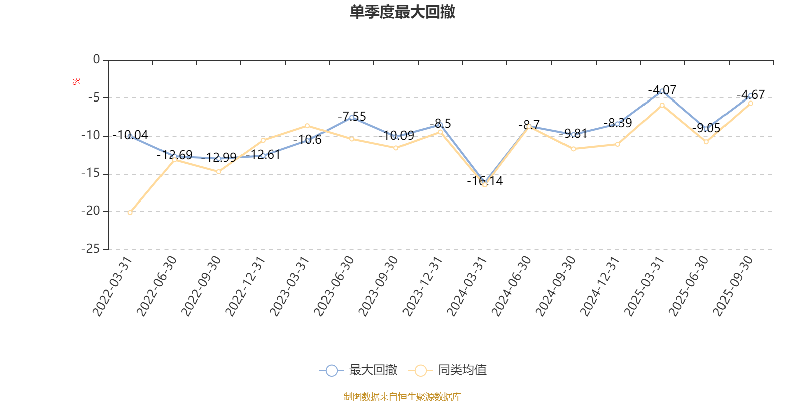 截至10月30日,基金近三年最大回撤为36.98%,同类可比基金排名294/513。单季度最大回撤出现在2024年一季度,为16.14%。