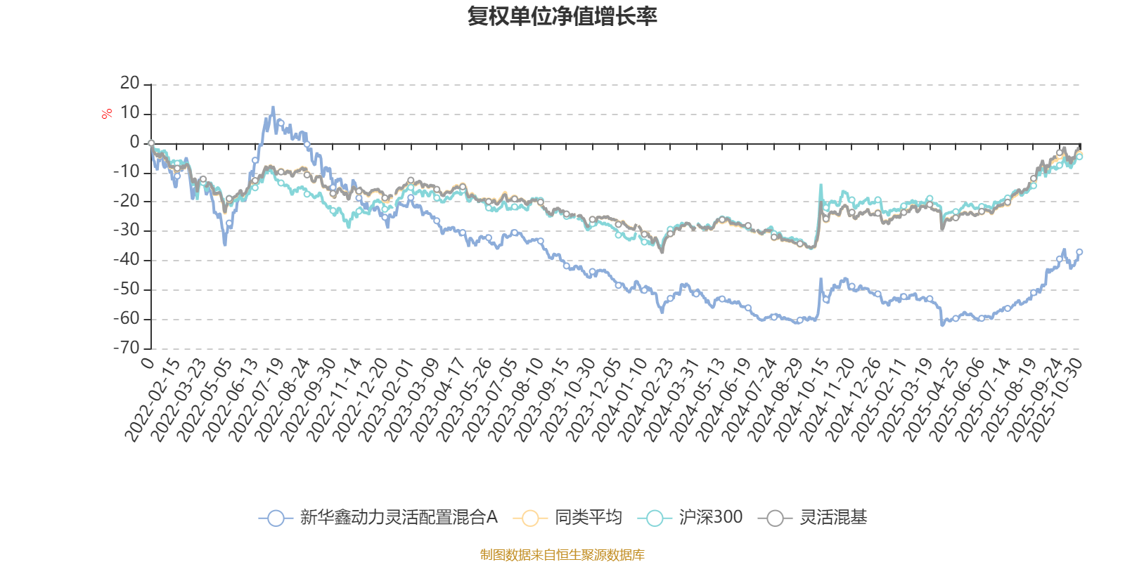 截至10月30日,新华鑫动力灵活配置混合A近三个月复权单位净值增长率为36.62%,位于同类可比基金94/1287;近半年复权单位净值增长率为55.63%,位于同类可比基金122/1287;近一年复权单位净值增长率为23.73%,位于同类可比基金622/1287;近三年复权单位净值增长率为-22.61%,位于同类可比基金1236/1286。