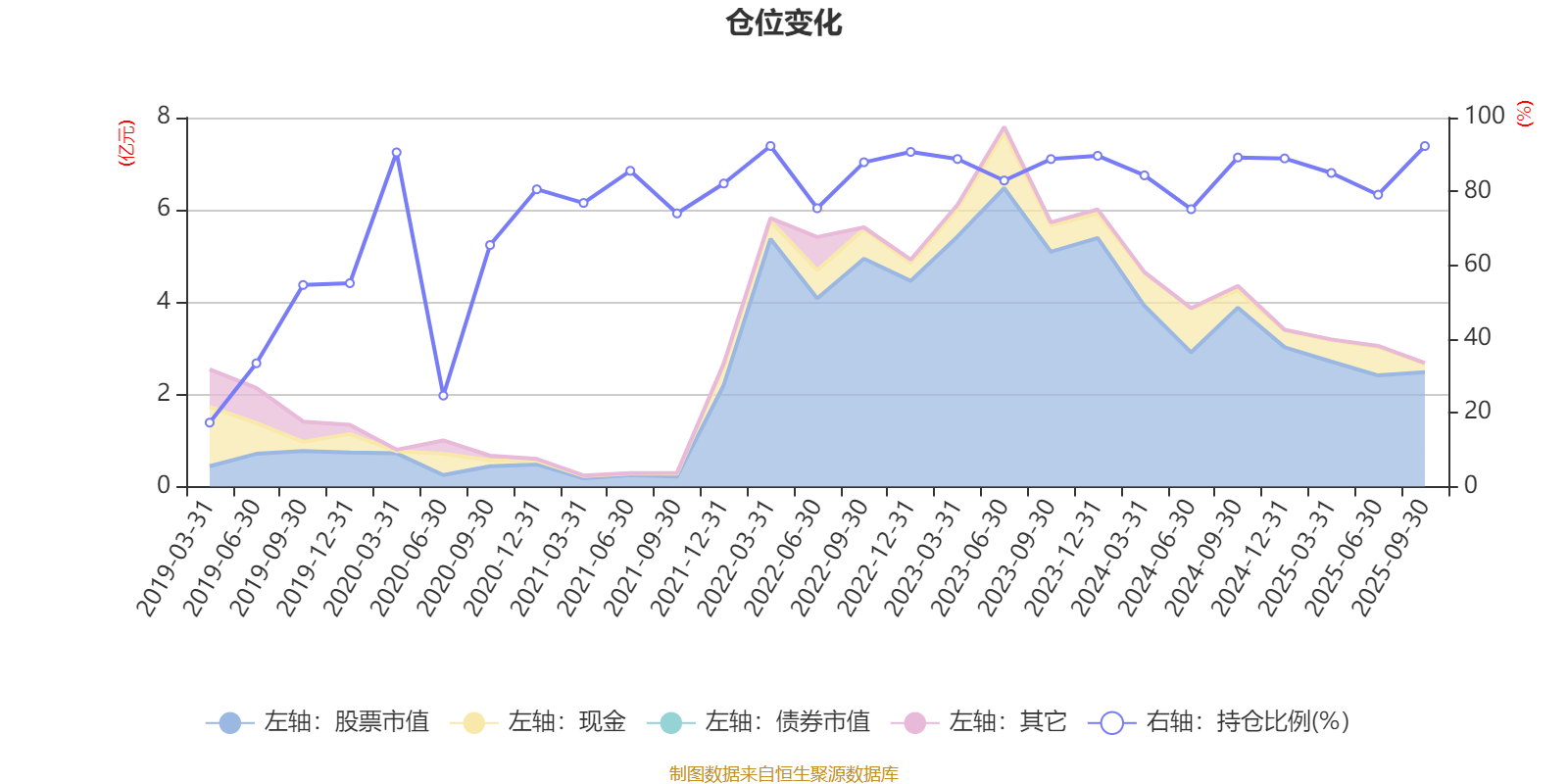 据定期报告数据统计,近三年平均股票仓位为86.24%,同类平均为72.35%。2022年一季度末基金达到92.31%的最高仓位,2019年一季度末最低,为17.33%。
