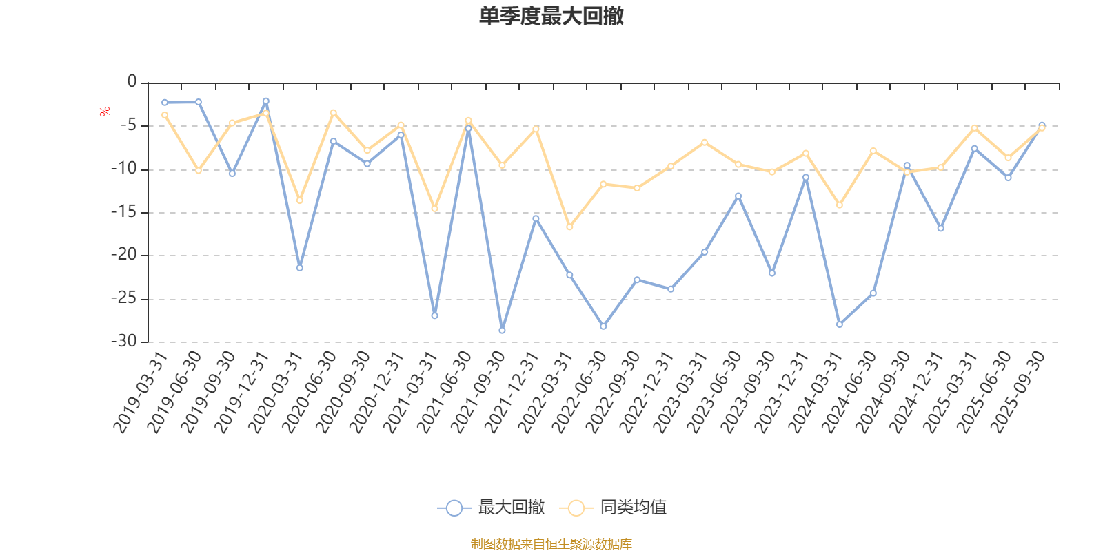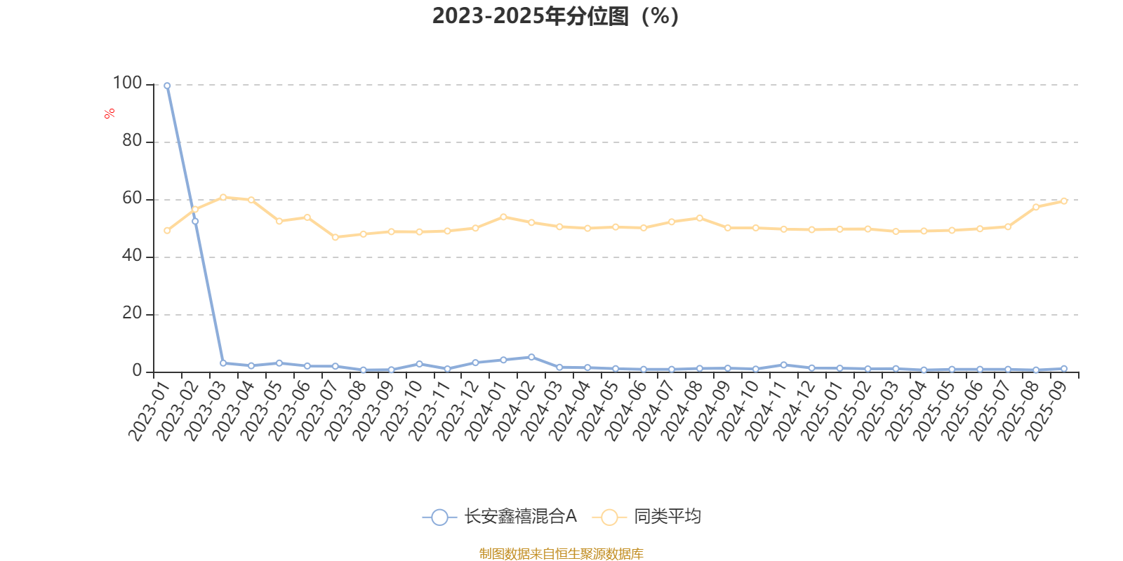通过所选区间该基金净值增长率分位图,可以观察该基金与同类基金业绩比较情况。图为坐标原点到区间内某时点的净值增长率在同类基金中的分位数。