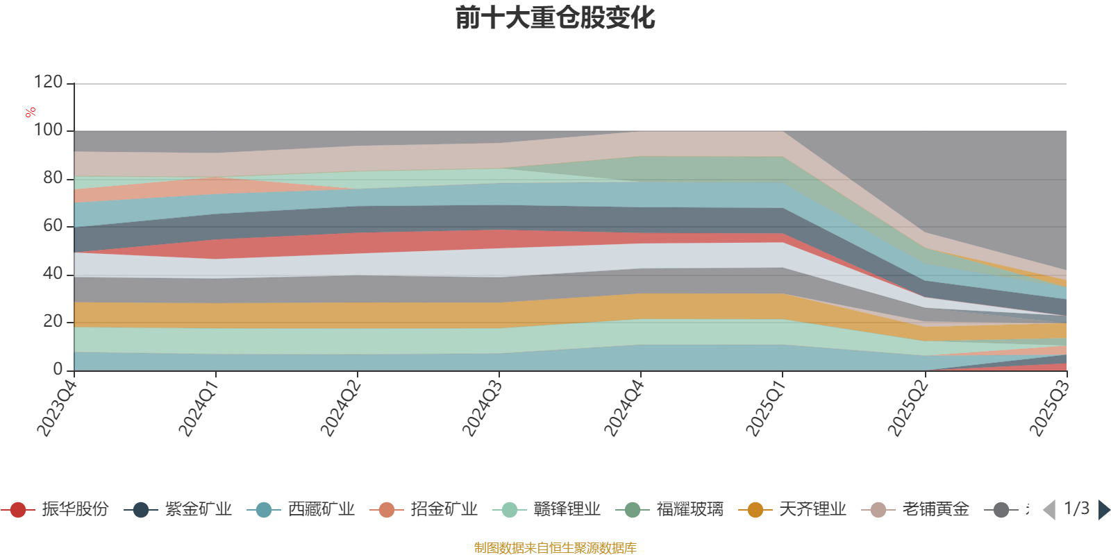 截至2025年三季度末,基金十大重仓股分别是中矿资源、天齐锂业、盛新锂能、融捷股份、招金矿业、紫金矿业、福耀玻璃、铜陵有色、振华股份、纽威股份。