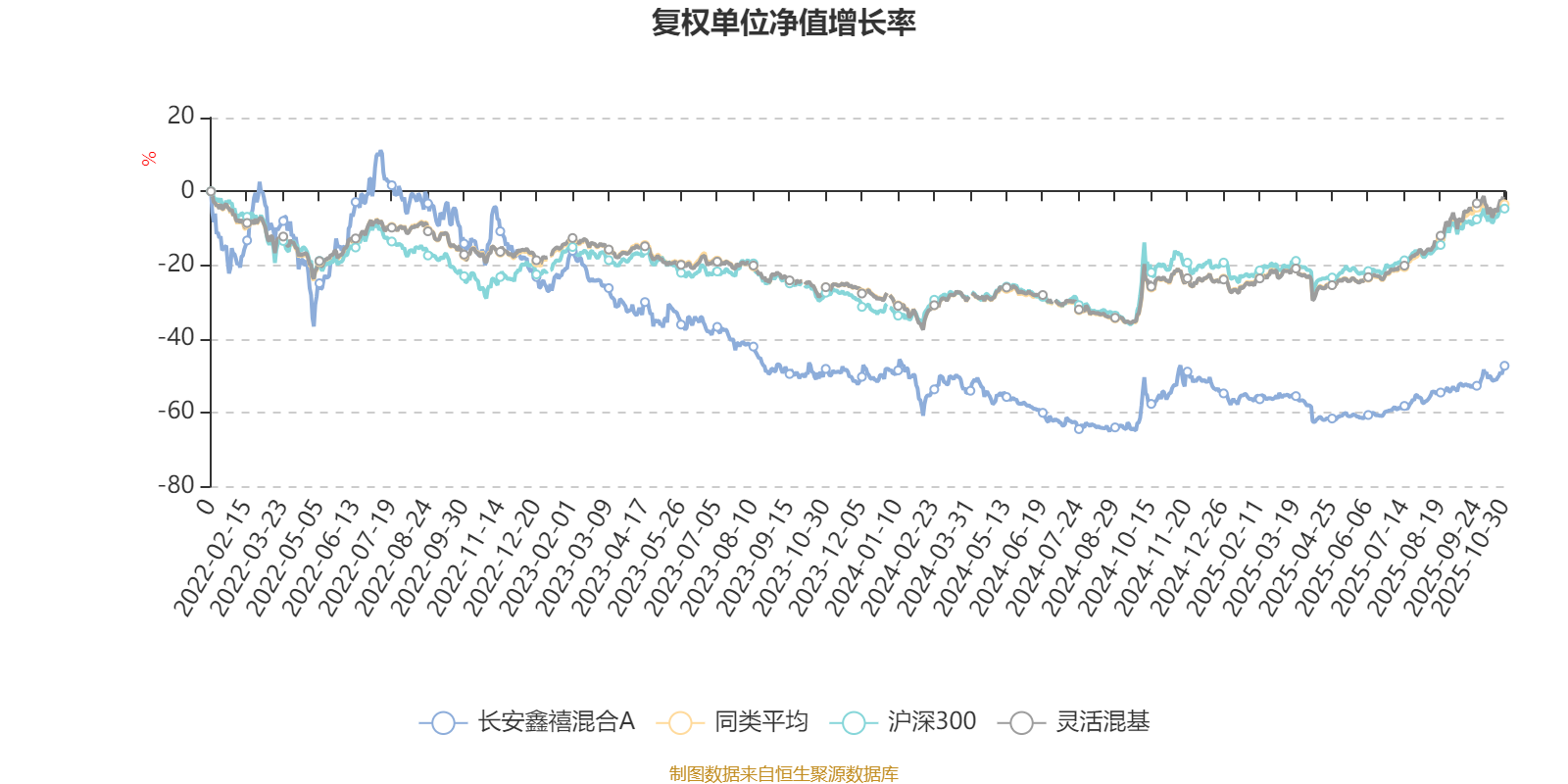 截至10月30日,长安鑫禧混合A近三个月复权单位净值增长率为20.08%,位于同类可比基金360/1287;近半年复权单位净值增长率为37.89%,位于同类可比基金310/1287;近一年复权单位净值增长率为20.91%,位于同类可比基金702/1287;近三年复权单位净值增长率为-34.10%,位于同类可比基金1270/1286。