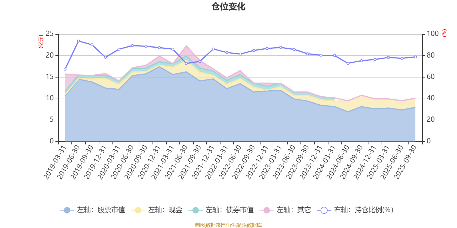 据定期报告数据统计,近三年平均股票仓位为80.17%,同类平均为72.35%。2019年上半年末基金达到93.67%的最高仓位,2019年一季度末最低,为67.38%。