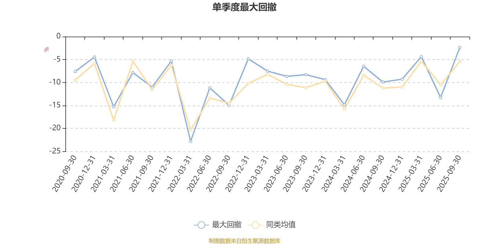 截至10月30日,基金近三年最大回撤为25.44%,同类可比基金排名40/251。单季度最大回撤出现在2022年一季度,为22.8%。