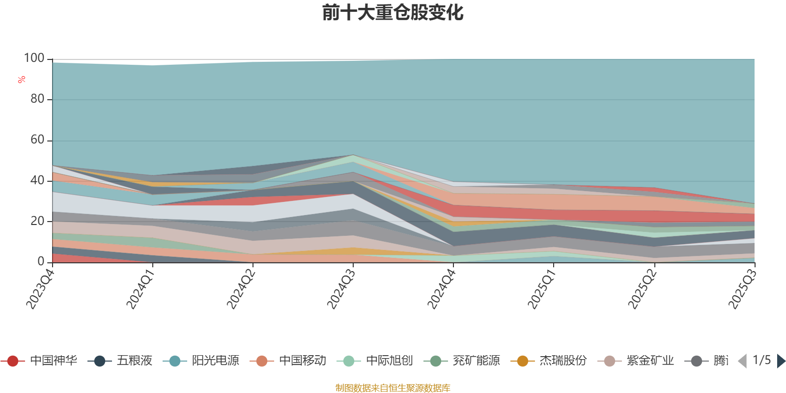 截至2025年三季度末,基金十大重仓股分别是腾讯控股、宁德时代、小米集团-W、阿里巴巴-W、贵州茅台、华虹半导体、阳光电源、紫金矿业、招商银行、中国人寿。