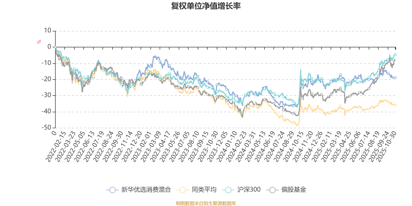 截至10月30日,新华优选消费混合近三个月复权单位净值增长率为1.18%,位于同类可比基金35/85;近半年复权单位净值增长率为4.66%,位于同类可比基金41/85;近一年复权单位净值增长率为7.11%,位于同类可比基金44/82;近三年复权单位净值增长率为13.45%,位于同类可比基金18/74。