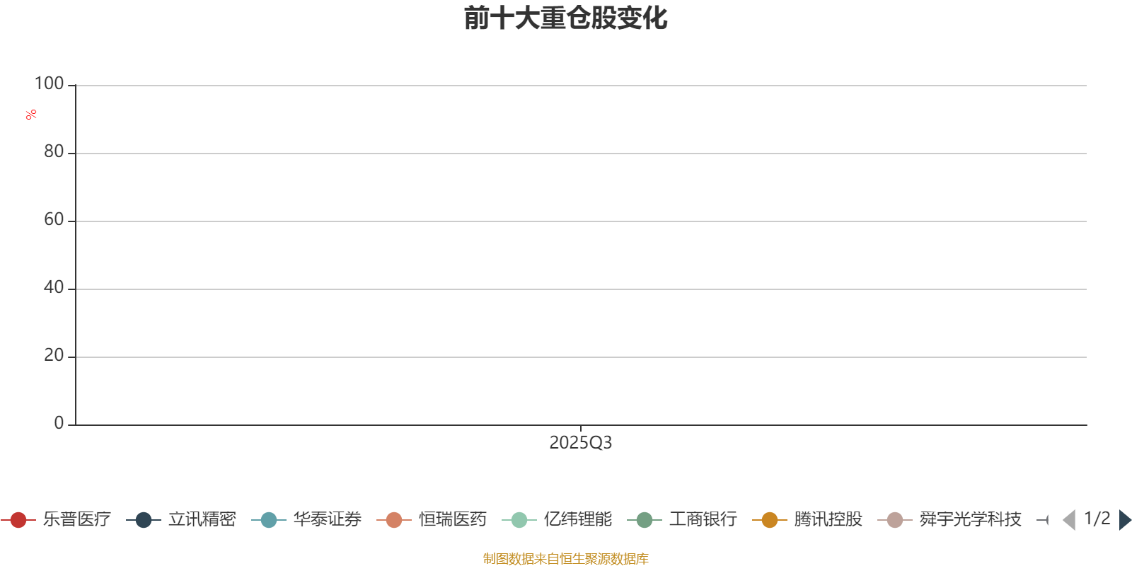 截至2025年三季度末,基金十大重仓股分别是立讯精密、舜宇光学科技、恒瑞医药、理想汽车-W、阿里巴巴-W、腾讯控股、亿纬锂能、工商银行、乐普医疗、华泰证券。