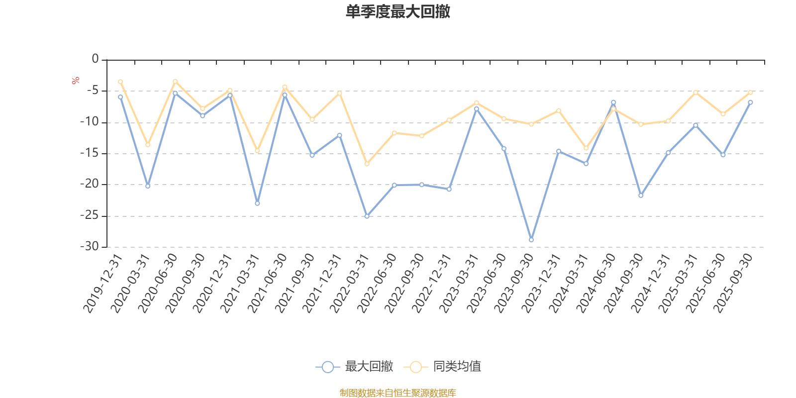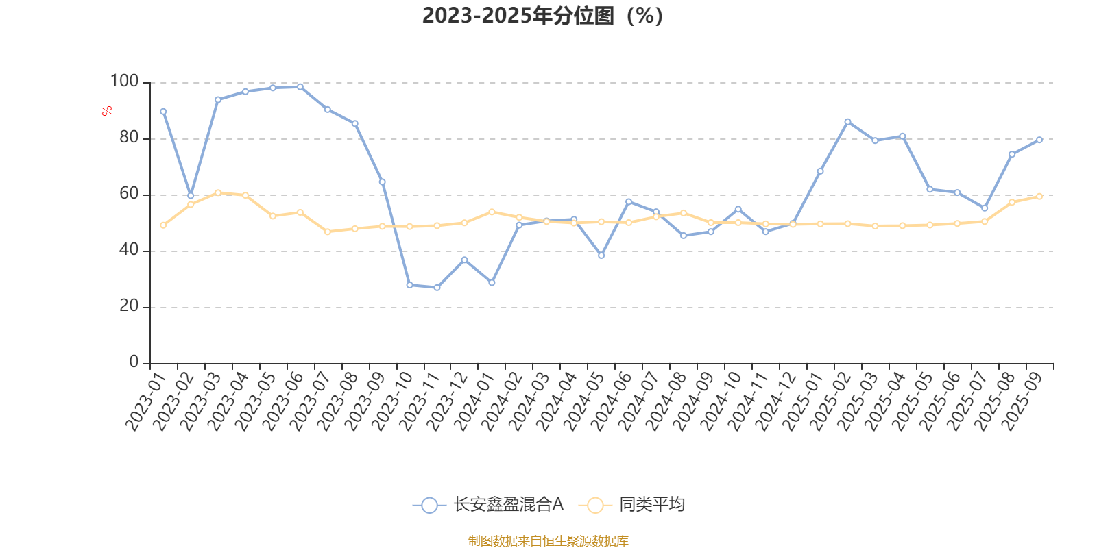 通过所选区间该基金净值增长率分位图,可以观察该基金与同类基金业绩比较情况。图为坐标原点到区间内某时点的净值增长率在同类基金中的分位数。