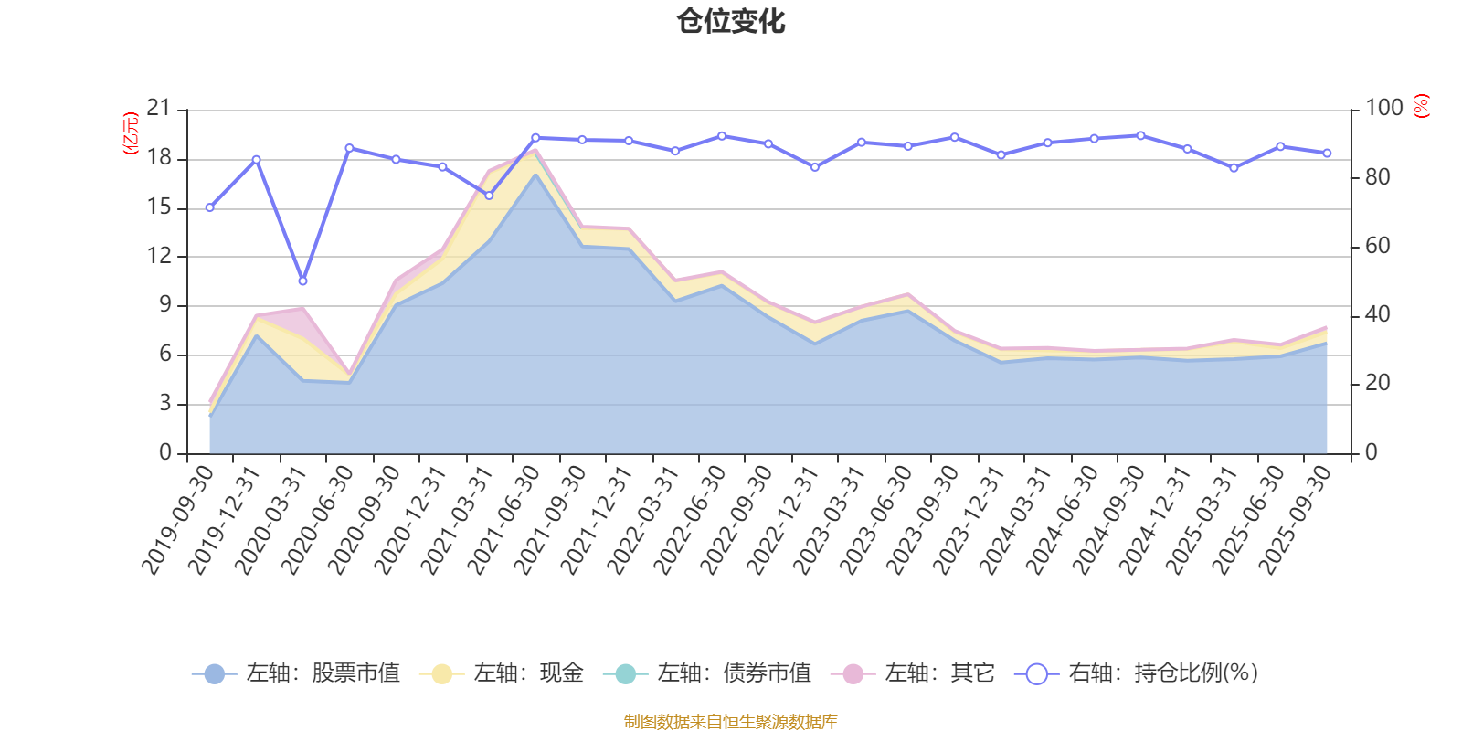 据定期报告数据统计,近三年平均股票仓位为88.74%,同类平均为72.35%。2024年三季度末基金达到92.47%的最高仓位,2020年一季度末最低,为50.2%。