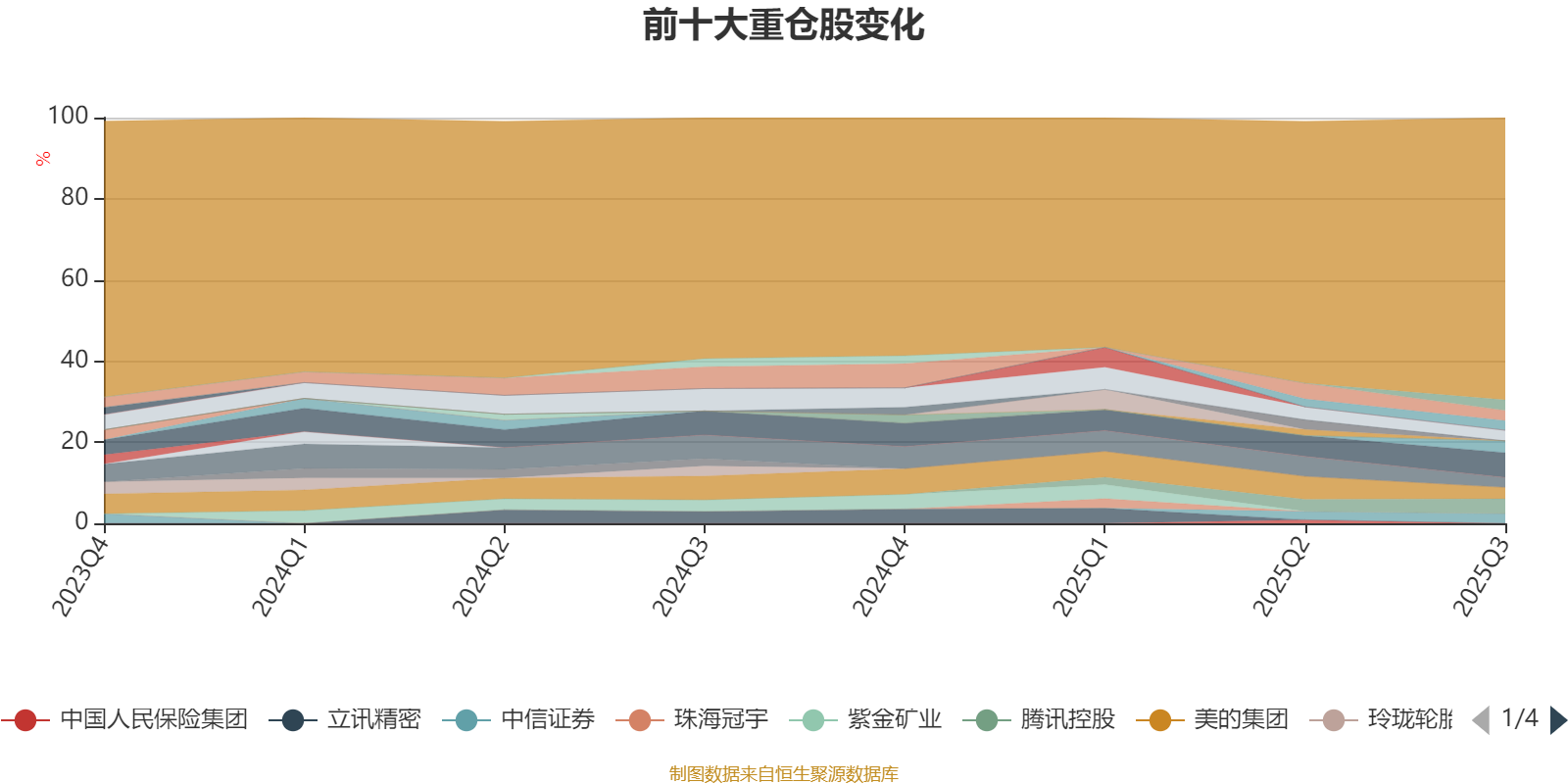 截至2025年三季度末,基金十大重仓股分别是宁德时代、腾讯控股、中兴通讯、美的集团、海尔智家、兆易创新、宁波银行、中信证券、贵州茅台、阿里巴巴-W。
