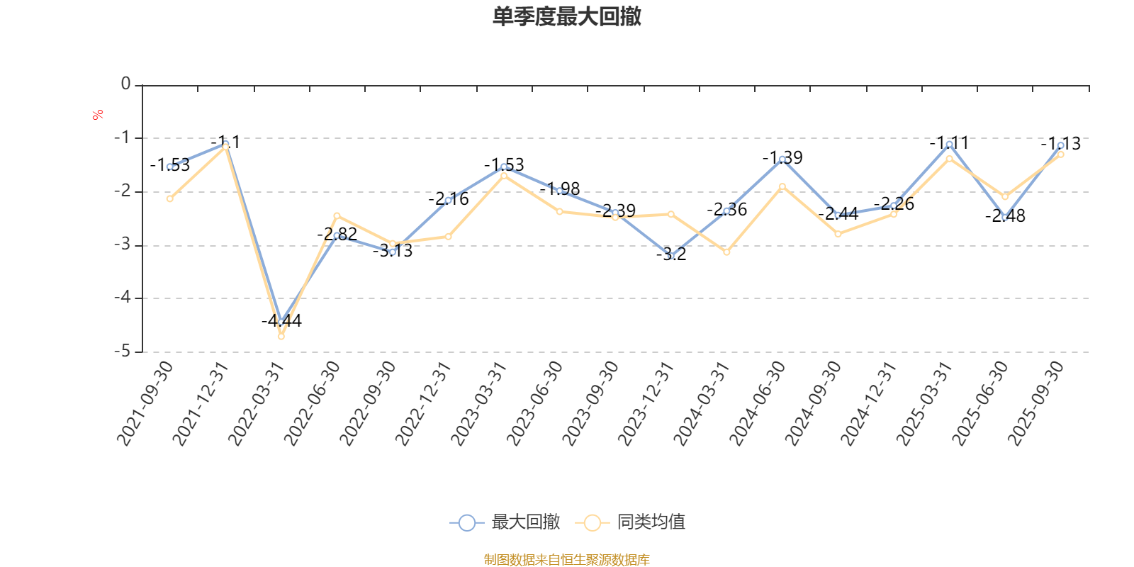 截至10月29日,基金近三年最大回撤为6.43%,同类可比基金排名275/534。单季度最大回撤出现在2022年一季度,为4.44%。