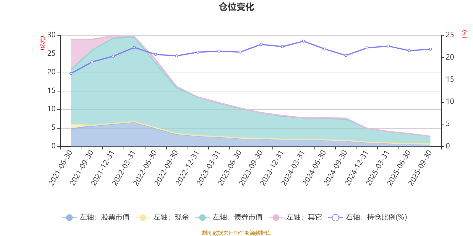 据定期报告数据统计,近三年平均股票仓位为21.98%,同类平均为19.14%。2024年一季度末基金达到23.7%的最高仓位,2021年上半年末最低,为16.42%。
