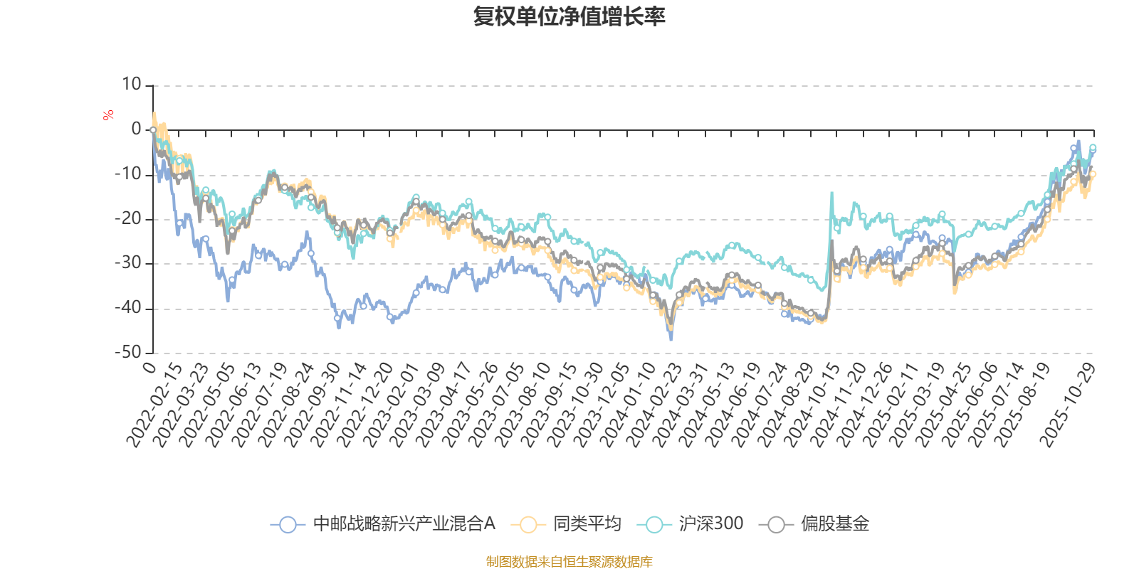 截至10月29日,中邮战略新兴产业混合A近三个月复权单位净值增长率为20.42%,位于同类可比基金87/265;近半年复权单位净值增长率为41.21%,位于同类可比基金71/265;近一年复权单位净值增长率为38.69%,位于同类可比基金72/265;近三年复权单位净值增长率为68.86%,位于同类可比基金12/253。