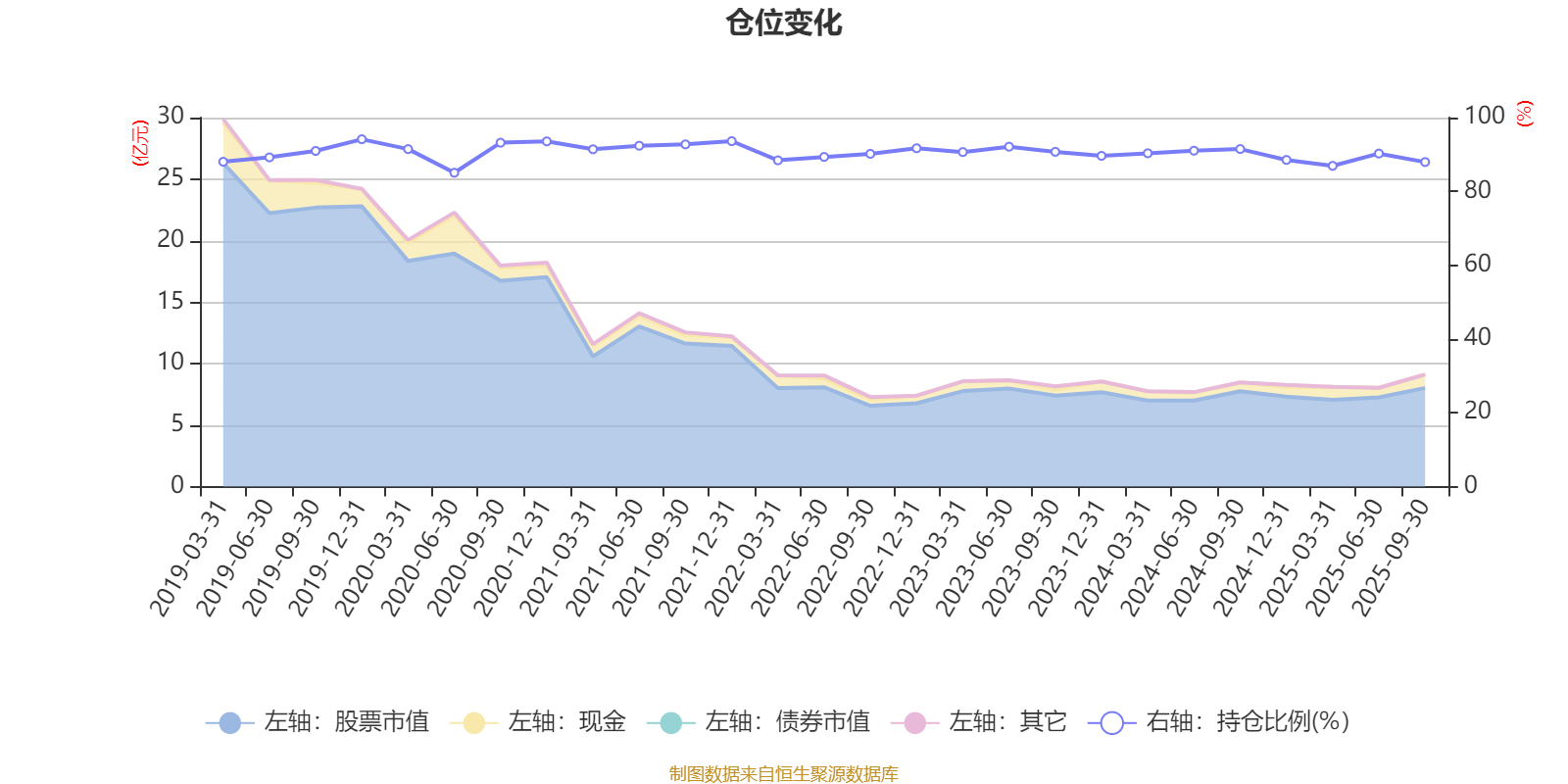 据定期报告数据统计,近三年平均股票仓位为90.11%,同类平均为85.99%。2019年末基金达到94.13%的最高仓位,2020年上半年末最低,为85.06%。