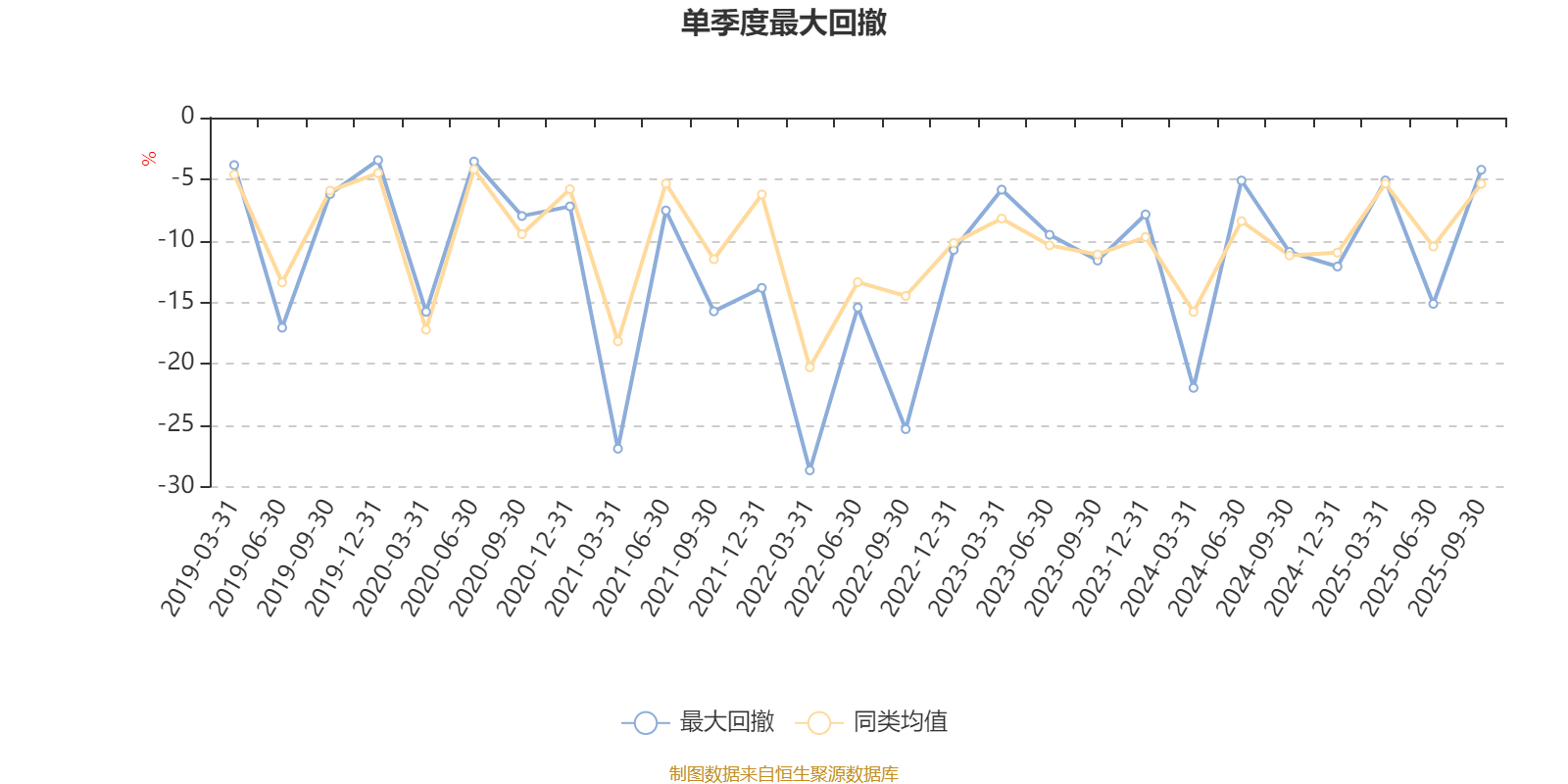 截至10月29日,基金近三年最大回撤为26.41%,同类可比基金排名46/251。单季度最大回撤出现在2022年一季度,为28.68%。