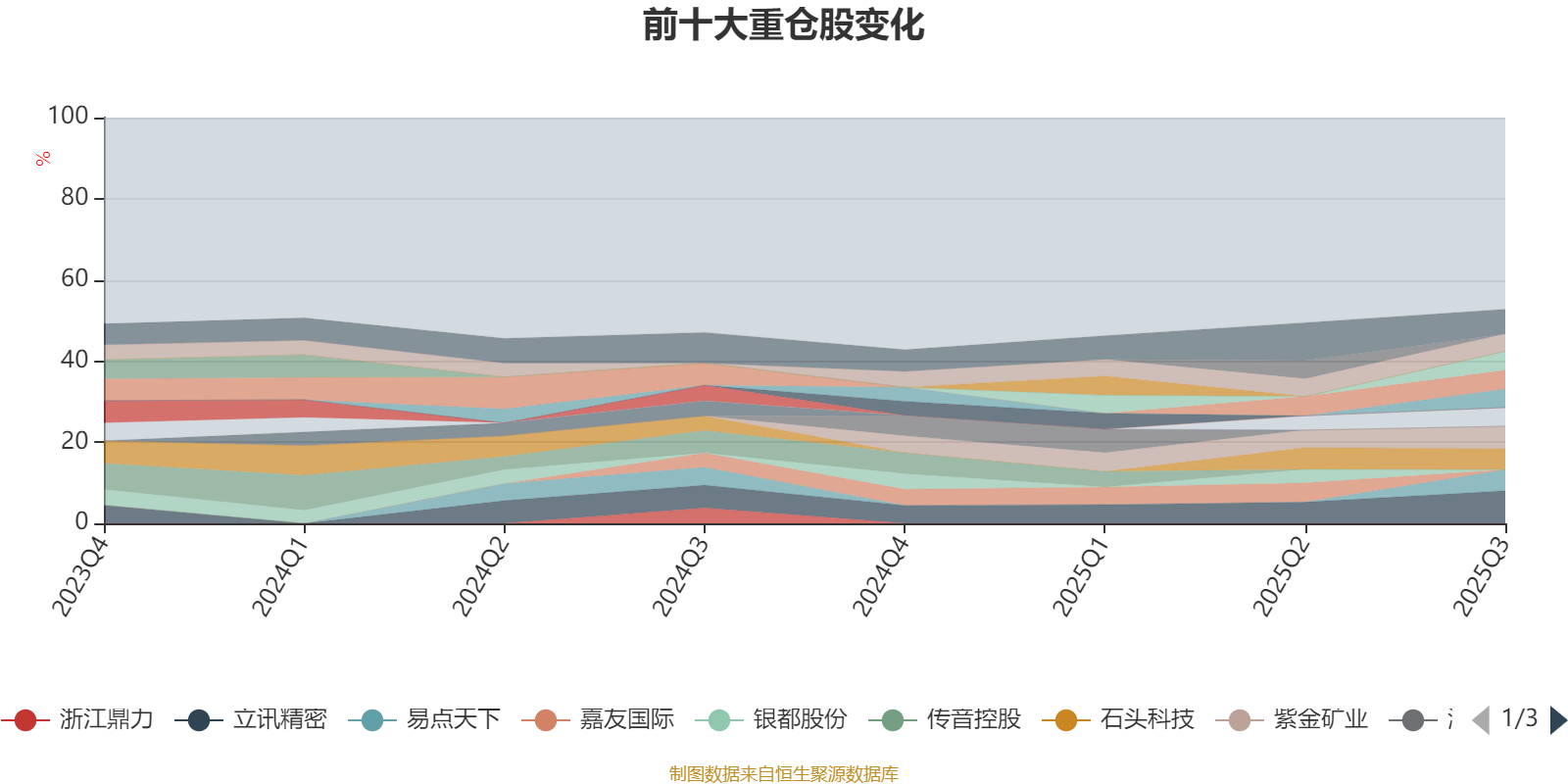 截至2025年三季度末,基金十大重仓股分别是立讯精密、安克创新、紫金矿业、石头科技、易点天下、歌尔股份、亿联网络、巨星科技、英科医疗、赛轮轮胎。