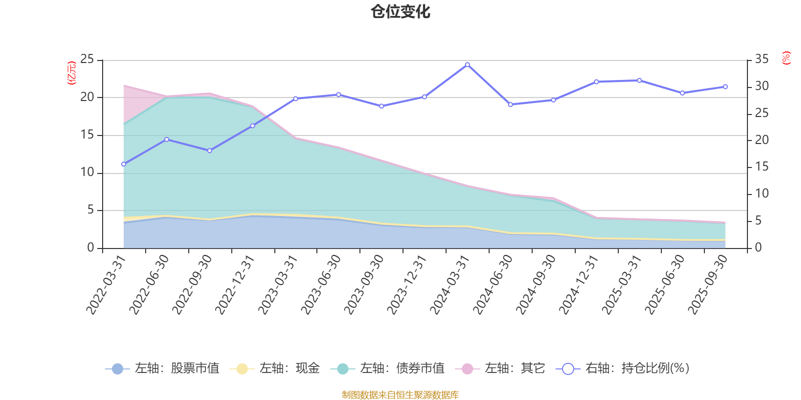 据定期报告数据统计,近三年平均股票仓位为28.6%,同类平均为19.14%。2024年一季度末基金达到34.13%的最高仓位,2022年一季度末最低,为15.64%。