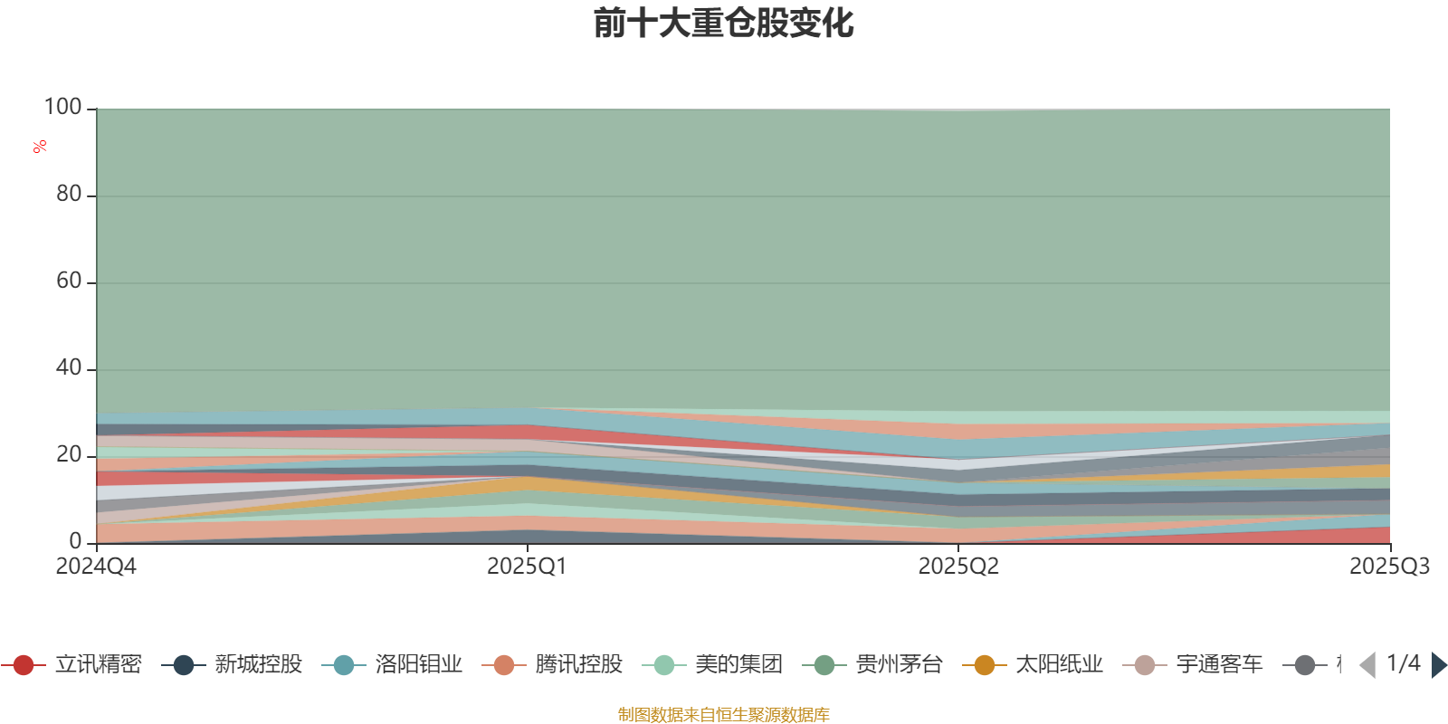 截至2025年三季度末,基金十大重仓股分别是中国平安、立讯精密、宁德时代、洛阳钼业、齐鲁银行、杭州银行、兆易创新、徐工机械、中国太保、金风科技。