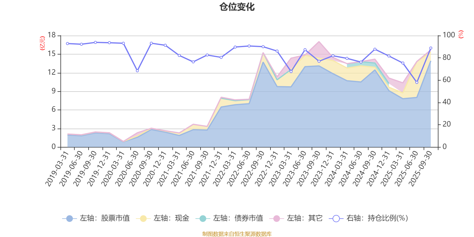 据定期报告数据统计,近三年平均股票仓位为78.95%,同类平均为85.99%。2019年三季度末基金达到93.86%的最高仓位,2025年上半年末最低,为57.99%。