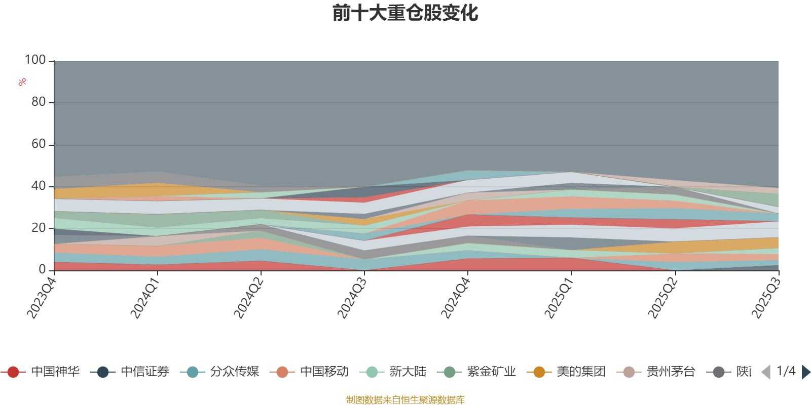 截至2025年三季度末,基金十大重仓股分别是宁德时代、新易盛、美的集团、渝农商行、银轮股份、中国移动、北京人力、新大陆、中信证券、分众传媒。