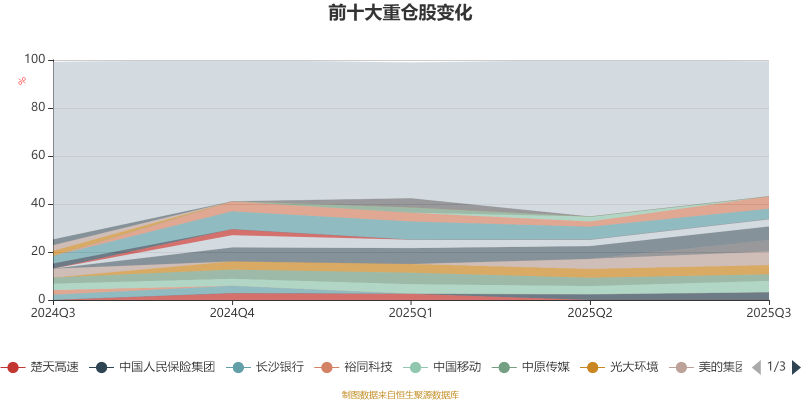 截至2025年三季度末,基金十大重仓股分别是美的集团、中信银行、徐工机械、太阳纸业、中国移动、建设银行、光大环境、中国人民保险集团、中材国际、中原传媒。