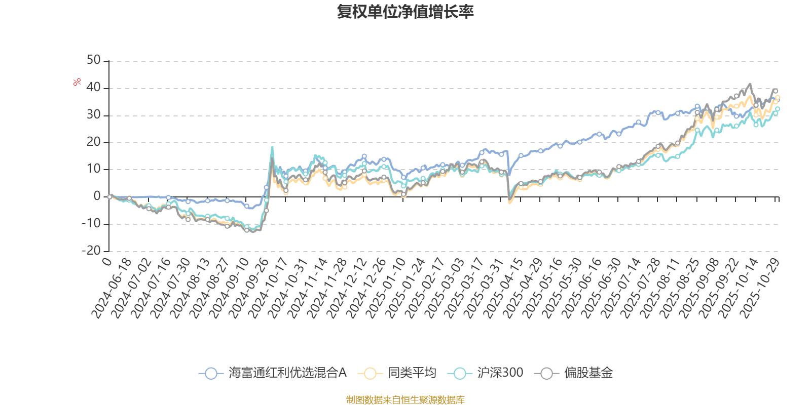 截至10月29日,海富通红利优选混合A近三个月复权单位净值增长率为3.99%,位于同类可比基金586/689;近半年复权单位净值增长率为16.08%,位于同类可比基金555/688;近一年复权单位净值增长率为23.43%,位于同类可比基金398/657。
