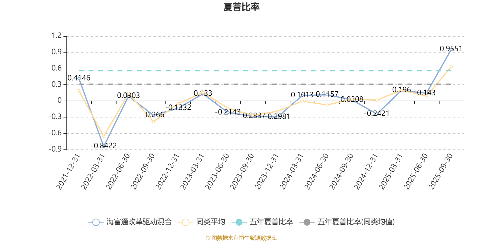 截至9月30日,基金近三年夏普比率为0.6899,位于同类可比基金408/1285。