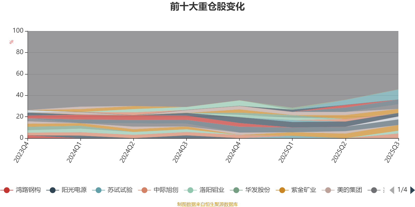 截至2025年三季度末,基金十大重仓股分别是新易盛、紫金矿业、宁德时代、中际旭创、天孚通信、工业富联、沪电股份、建发股份、盛屯矿业、洛阳钼业。