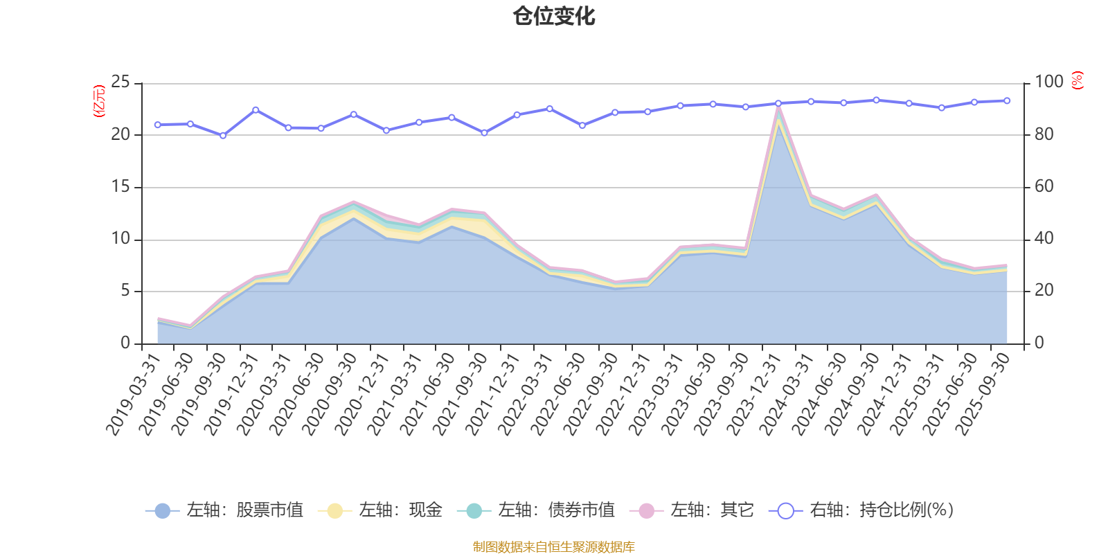 据定期报告数据统计,近三年平均股票仓位为91.92%,同类平均为72.35%。2024年三季度末基金达到93.51%的最高仓位,2019年三季度末最低,为79.87%。