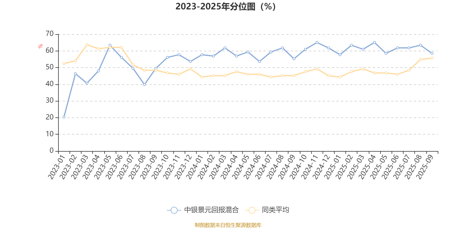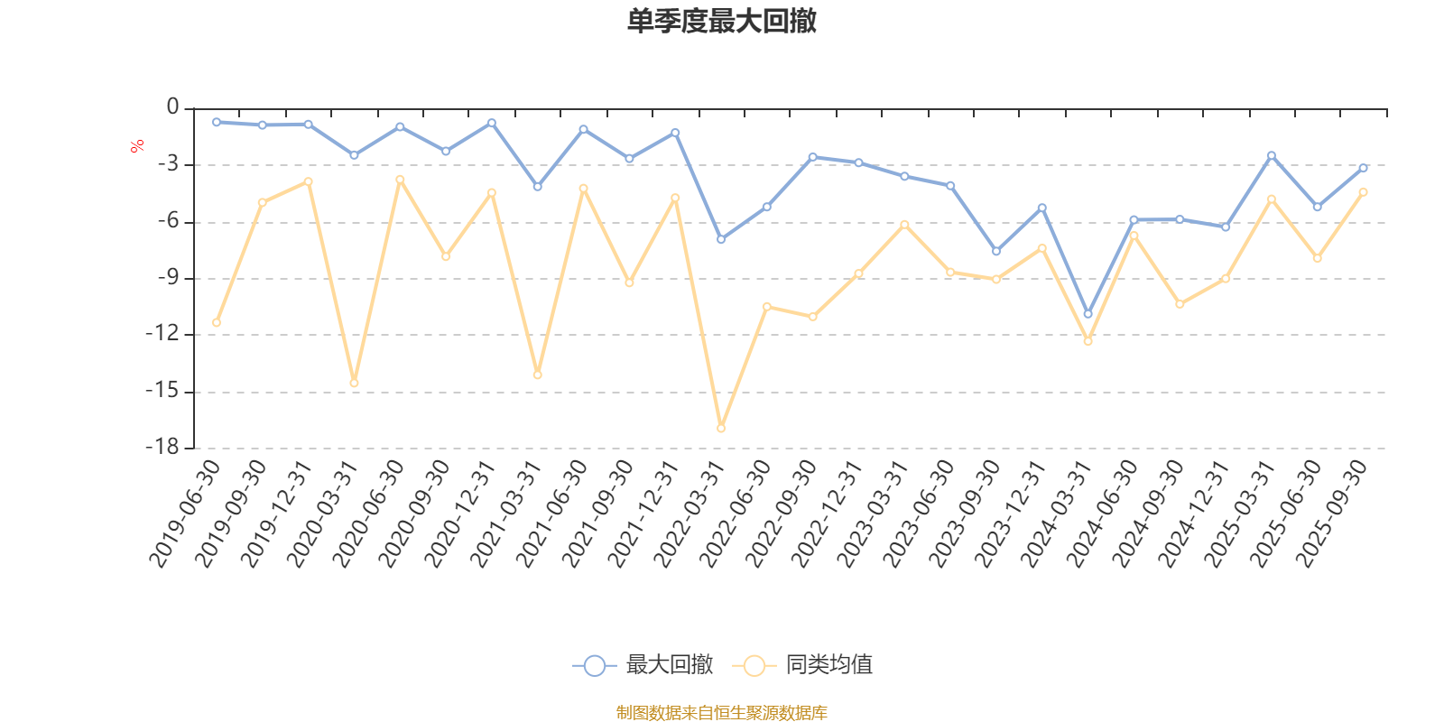通过所选区间该基金净值增长率分位图,可以观察该基金与同类基金业绩比较情况。图为坐标原点到区间内某时点的净值增长率在同类基金中的分位数。
