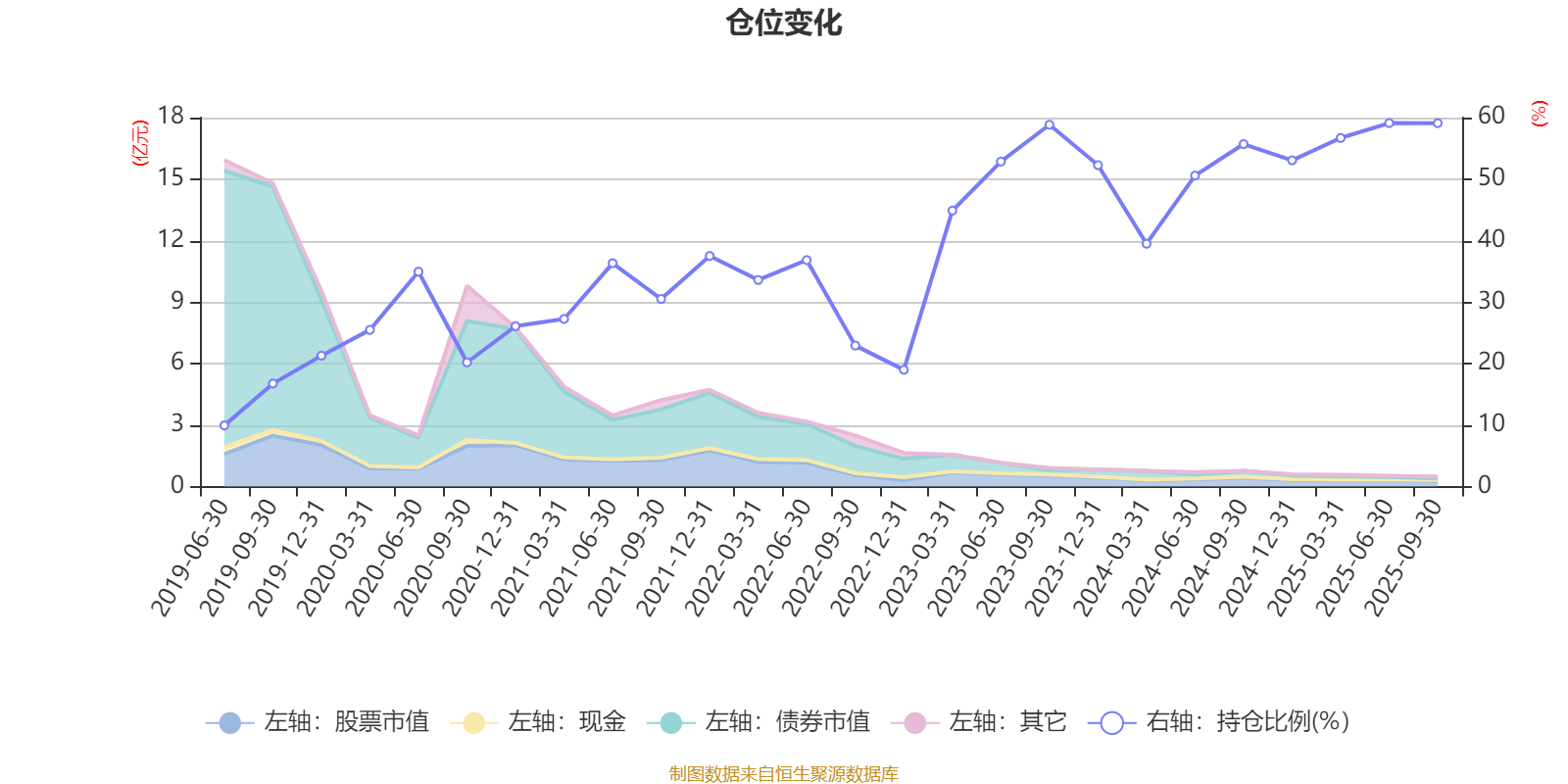 据定期报告数据统计,近三年平均股票仓位为50.13%,同类平均为67.37%。2025年上半年末基金达到59.11%的最高仓位,2019年上半年末最低,为9.94%。