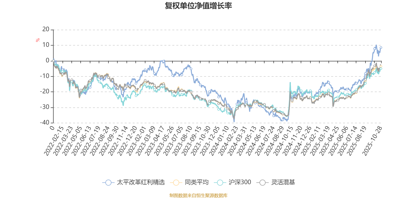 截至10月28日,太平改革红利精选近三个月复权单位净值增长率为24.25%,位于同类可比基金266/1287;近半年复权单位净值增长率为36.47%,位于同类可比基金343/1287;近一年复权单位净值增长率为37.14%,位于同类可比基金280/1287;近三年复权单位净值增长率为41.39%,位于同类可比基金223/1286。