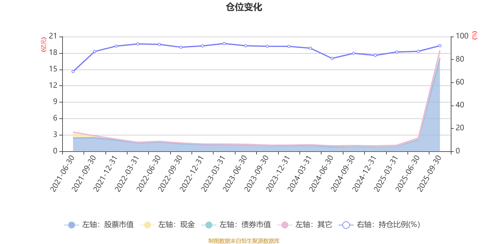 据定期报告数据统计,近三年平均股票仓位为88.9%,同类平均为83.73%。2023年一季度末基金达到93.96%的最高仓位,2021年上半年末最低,为69.61%。