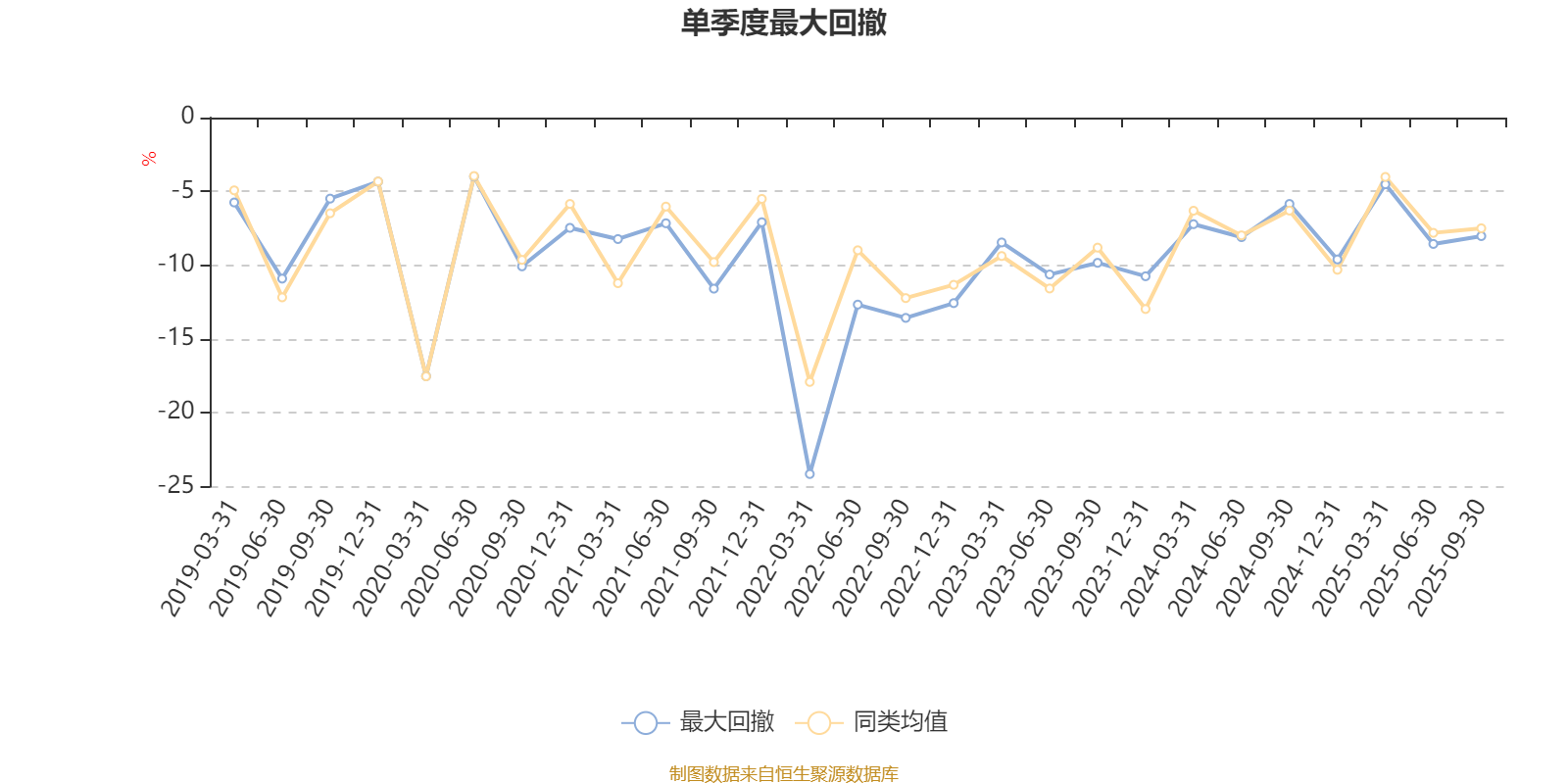 截至10月28日,基金近三年最大回撤为22.7%,同类可比基金排名4/12。单季度最大回撤出现在2022年一季度,为24.15%。