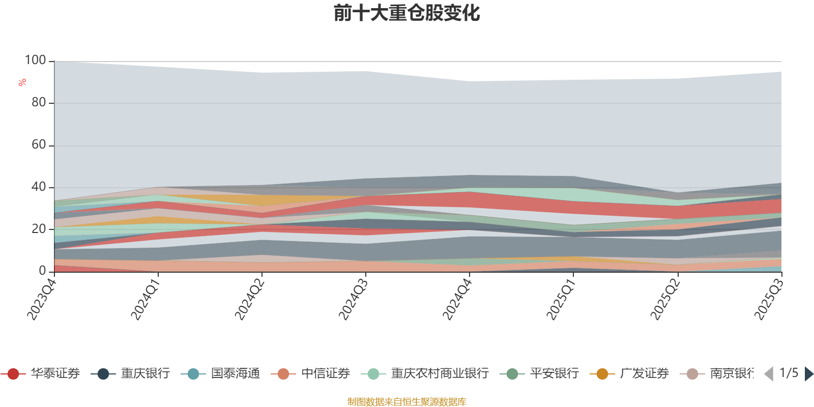 截至2025年三季度末,基金重仓股分别是招商银行、中国平安、华润置地、建设银行、中信证券、渝农商行、国泰海通、东方证券、杭州银行、工商银行、重庆农村商业银行。