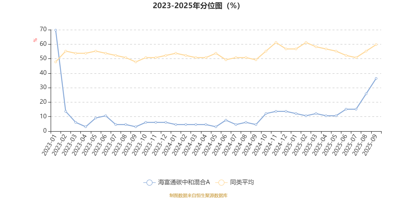 截至10月29日,海富通碳中和混合A近三个月复权单位净值增长率为42.56%,位于同类可比基金4/100;近半年复权单位净值增长率为71.77%,位于同类可比基金1/99;近一年复权单位净值增长率为53.87%,位于同类可比基金13/90;近三年复权单位净值增长率为-6.54%,位于同类可比基金39/62。