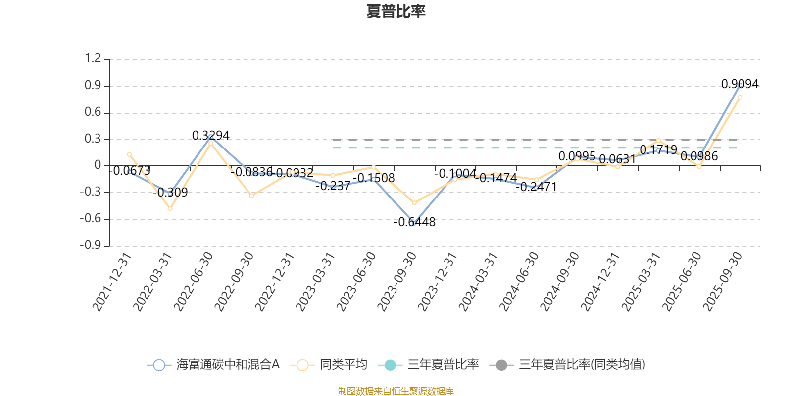 截至9月30日,基金近三年夏普比率为0.2056,位于同类可比基金37/60。